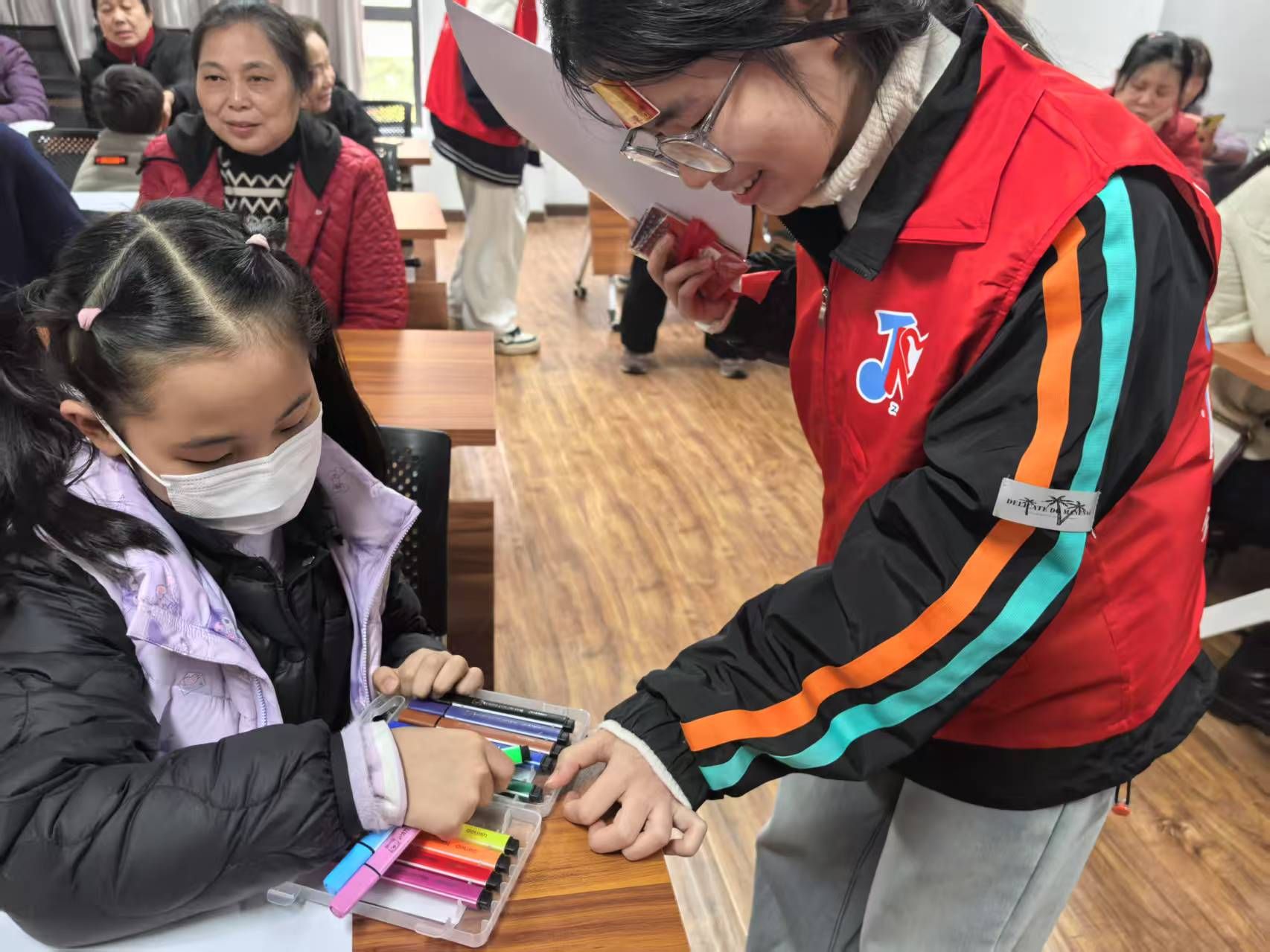 为了让小朋友们充分发挥想象力,志愿者们提前准备了画纸和水彩笔,开展了“画出心中的社区”活动。孩子们在画纸上尽情挥洒,用五彩斑斓的画笔勾勒出他们心中的美好社区。每一幅画都充满了童真与创意,每一笔都描绘着孩子们对幸福家园的向往。这些画作不仅展示了孩子们的想象力,也传递出他们对社区的热爱和对未来的憧憬。