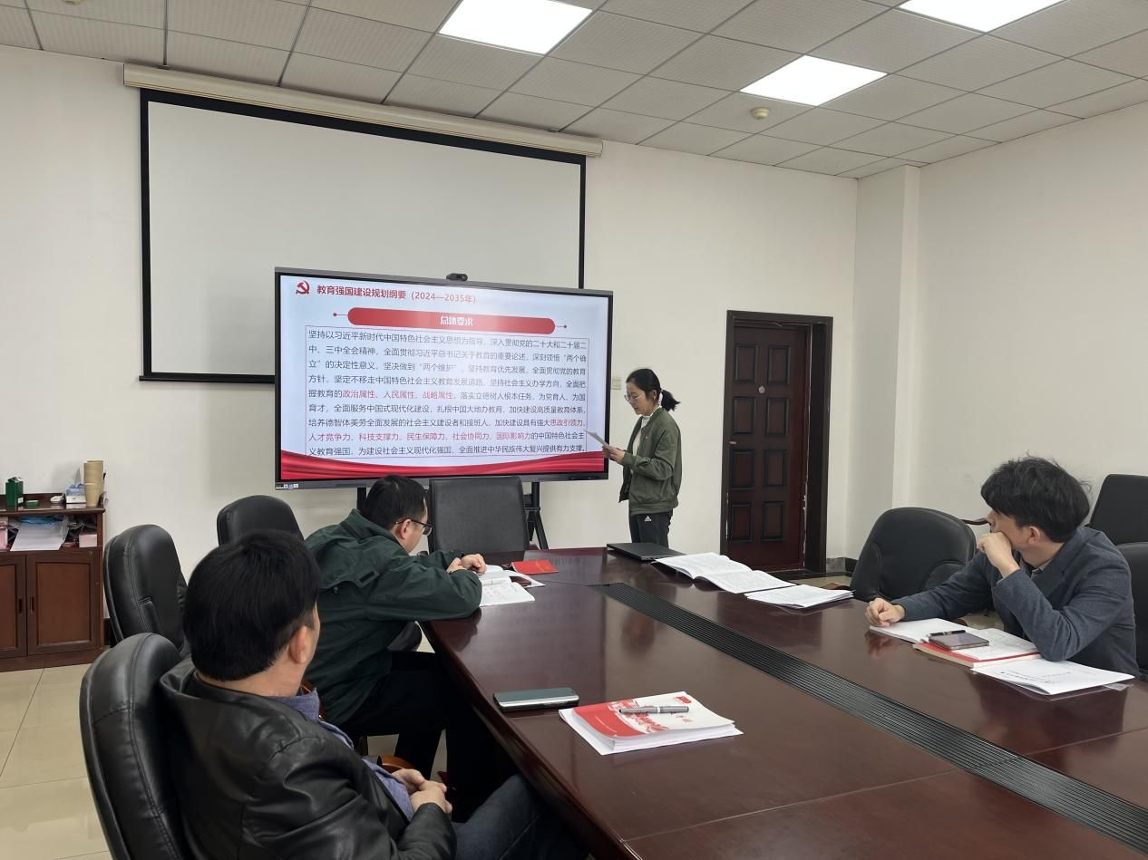 党支部书记杨祯以《教育强国建设,管理服务团队何为》为题讲授党课,根据《教育强国建设规划纲要(2024—2035年)》内容,强调高校管理服务团队需聚焦“效能革命”,通过优化管理服务流程、创新人才培养机制,为教育综合改革提供坚实保障。鼓励支部成员提升服务意识,优化管理效能;加强自身建设,提升专业能力。