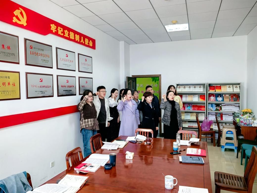 全体党员重温入党誓词,集体学习《中国共产党章程》,履行党员义务。