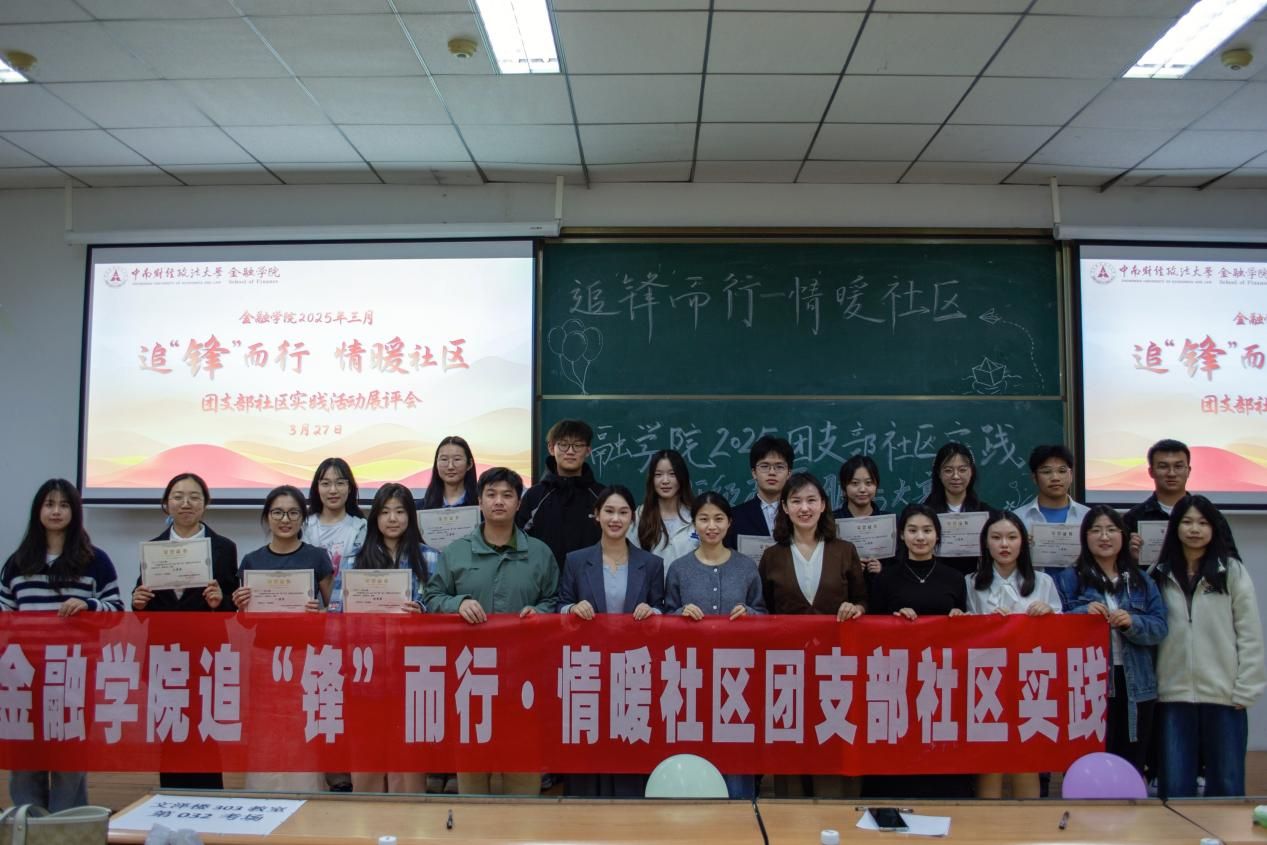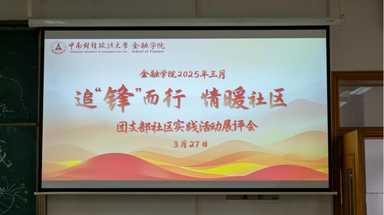 (学生记者 刘致学)春风拂面,志愿同行。为弘扬雷锋精神,展现青年担当,3月27日下午,金融学院2025年 “追锋而行,情暖社区” 团支部社区实践系列活动项目展评会于首义校区文泽楼303教室圆满落幕。金融学院团委书记李奥老师、团委副书记彭东老师、24级辅导员莎吉丹姆老师、李梦梵老师出席活动并担任评委,全院2024级本科生9个团支部代表依次登台展示实践成果。