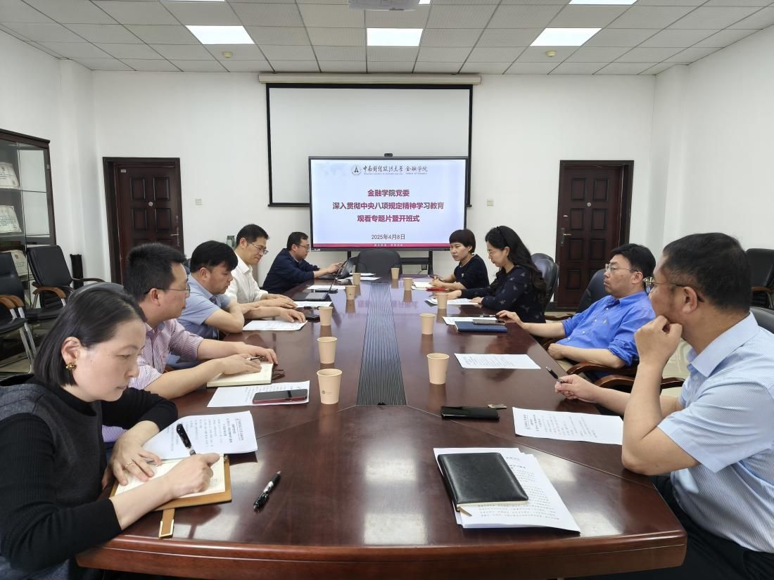 根据《中共米兰电竞·(中国区)委员会关于开展深入贯彻中央八项规定精神学习教育的实施方案》和校党委理论学习中心组读书班安排,结合金融学院实际,金融学院于2025年4月8日下午在文泉楼南408会议室开展了中心组读书班开班式并观看了警示教育专题片。金融学院党委理论学习中心组成员参加学习,党委书记汪平主持会议。