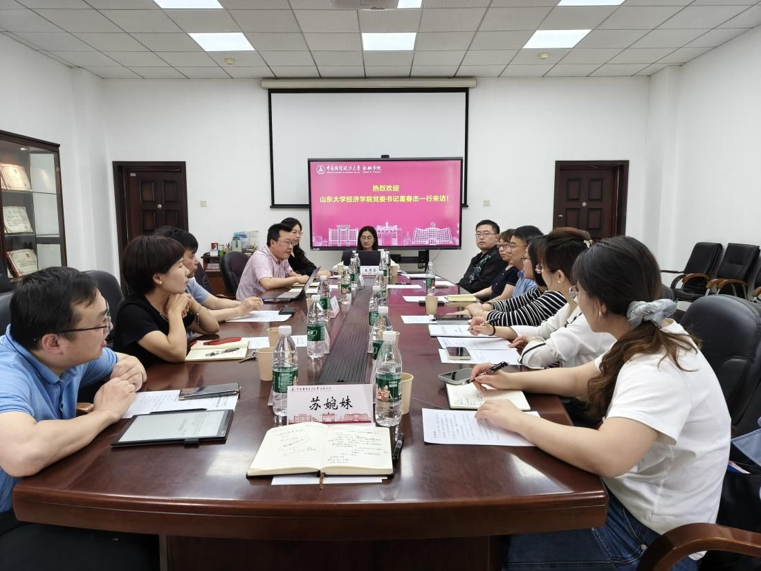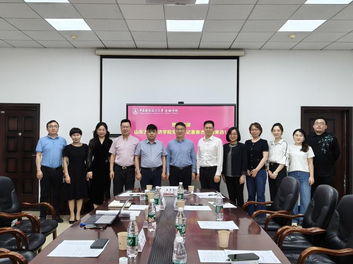 (通讯员 苏婉妹)4月17日,山东大学经济学院党委书记董春杰一行到访我院,金融学院党委书记汪平、院长余明桂、副院长吕勇斌、党委副书记兼行政副院长,纪委书记向敏、党委副书记朱诚蕾等参加了座谈会。院党委书记汪平主持会议。
