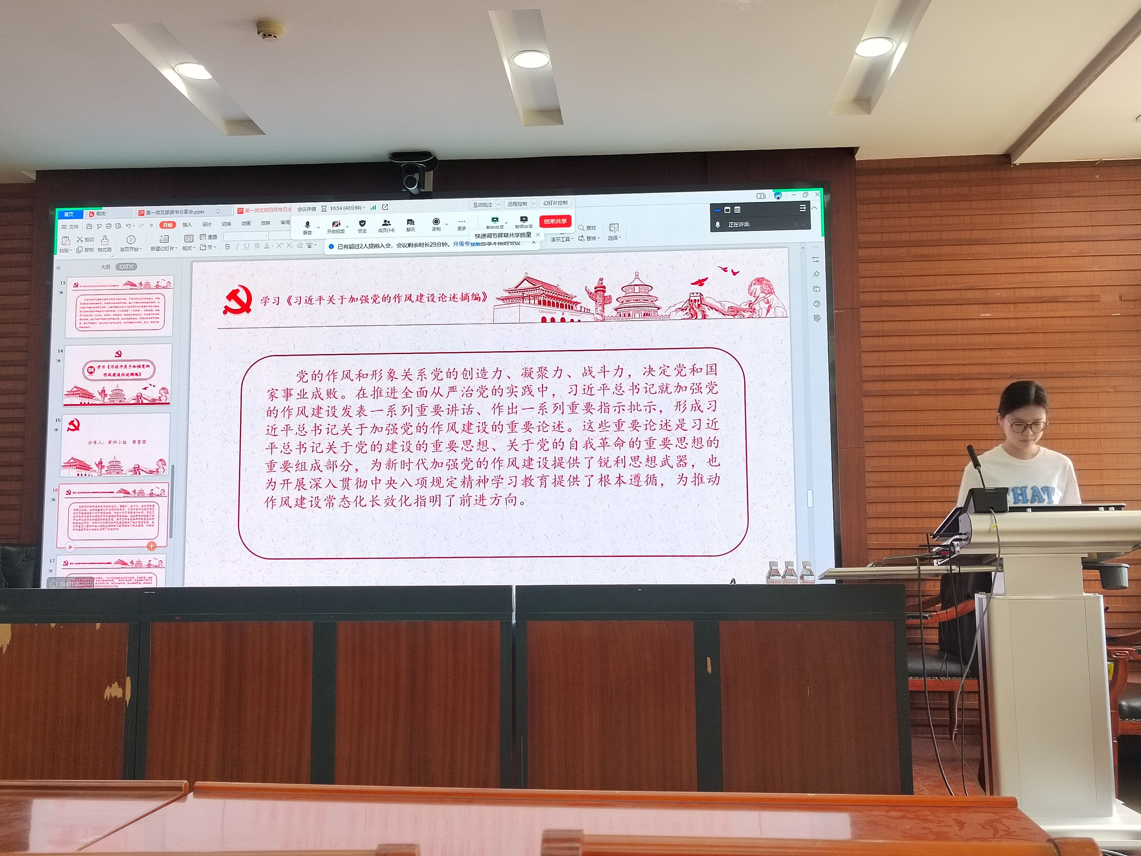 第四小组的高雪菲同志则分享了学习《习近平关于加强党的作风建设论述摘编》的体会。她逐章逐段研读,并围绕“作风问题本质上是党性问题”,结合实际展开分析与交流讨论,深入掌握了加强党的作风建设的要求。