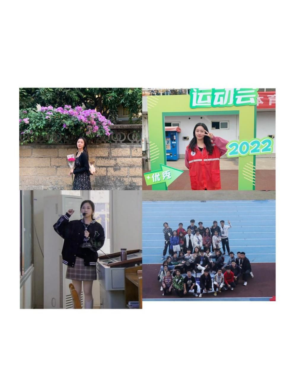 作为一名中共党员,始终以高标准要求自己,在金融学院本科生党总支组织发展部任职期间,协助老师完成党员材料培训与审核工作,跟进发展流程。作为班级团支书,聚焦思想引领,策划了10余场主题团日活动,带领班级获评“红旗团支部”,并在团支部风采大赛中获得一等奖。作为校学生会体育部成员,协助筹备校运动会,进行官方账号运营。暑期深入社会实践,实践成果获评校级“优秀社会实践队”。课余时间坚持发展个人兴趣,积极参与校舞蹈团训练与活动。