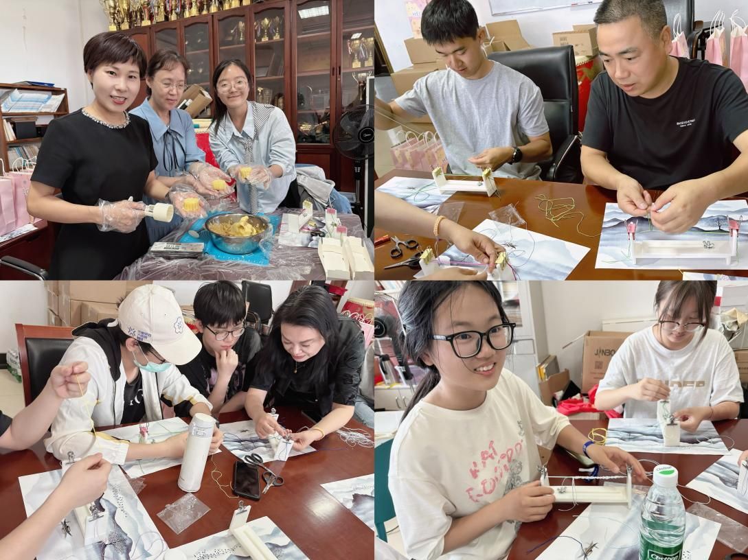 在编织五彩绳时,各色丝线整齐摆放,同学们在专业老师手把手指导下,学习平结、金刚结等编织技巧。纤细的丝线在指尖穿梭缠绕,大家相互交流,欢声笑语不断。绿豆糕制作现场则热火朝天,从揉制馅料到定型脱模,同学们分工协作,有条不紊。当清香松软的绿豆糕新鲜出炉,大家迫不及待地品尝自己的劳动成果,并互相分享制作心得。