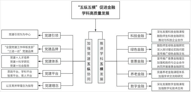 学院始终将党的领导贯穿人才培养的全过程,创新“党建+人才培养”“党建+科学研究”“党建+社会服务”的赋能模式,构建“五纵五横”促进金融学科高质量发展的体系结构。