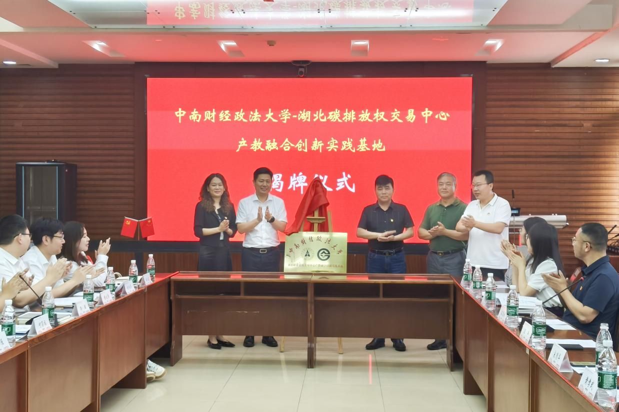 揭牌仪式中,金融学院党委书记汪平、副院长吕勇斌、宋清华教授与湖北碳交中心党委副书记、总经理何昌福,党委委员、副总经理张雁共同为“米兰电竞·(中国区)-湖北碳排放权交易中心产教融合创新实践基地”揭牌。该基地的成立,将深化校企协同发展,构建“课程-实践-科研-转化”四位一体的育人体系,培养具备碳市场实务操作、碳金融产品设计、碳政策研究能力的复合型、应用型、创新型高层次人才。