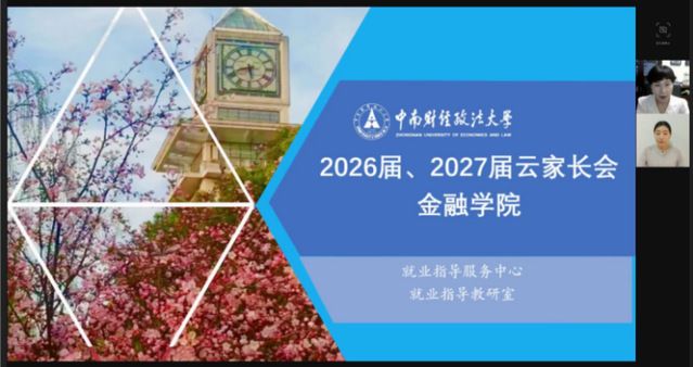 (学生通讯员 袁卓晖 叶灵雨)为进一步助力2026/2027届本科毕业生明确职业规划方向,提升就业升学竞争力,金融学院于2025年6月23日晚7:00-9:00通过线上会议形式召开就业工作云家长会,数百位家长云端参会。金融学院院长余明桂、党委书记汪平、党委副书记朱诚蕾,校就业指导服务中心郭婉钰,研究生工作办公室主任王秀景,学生办公室主任程明梅以及2026届/2027届本科生辅导员老师参加了会议,会议由朱诚蕾主持。