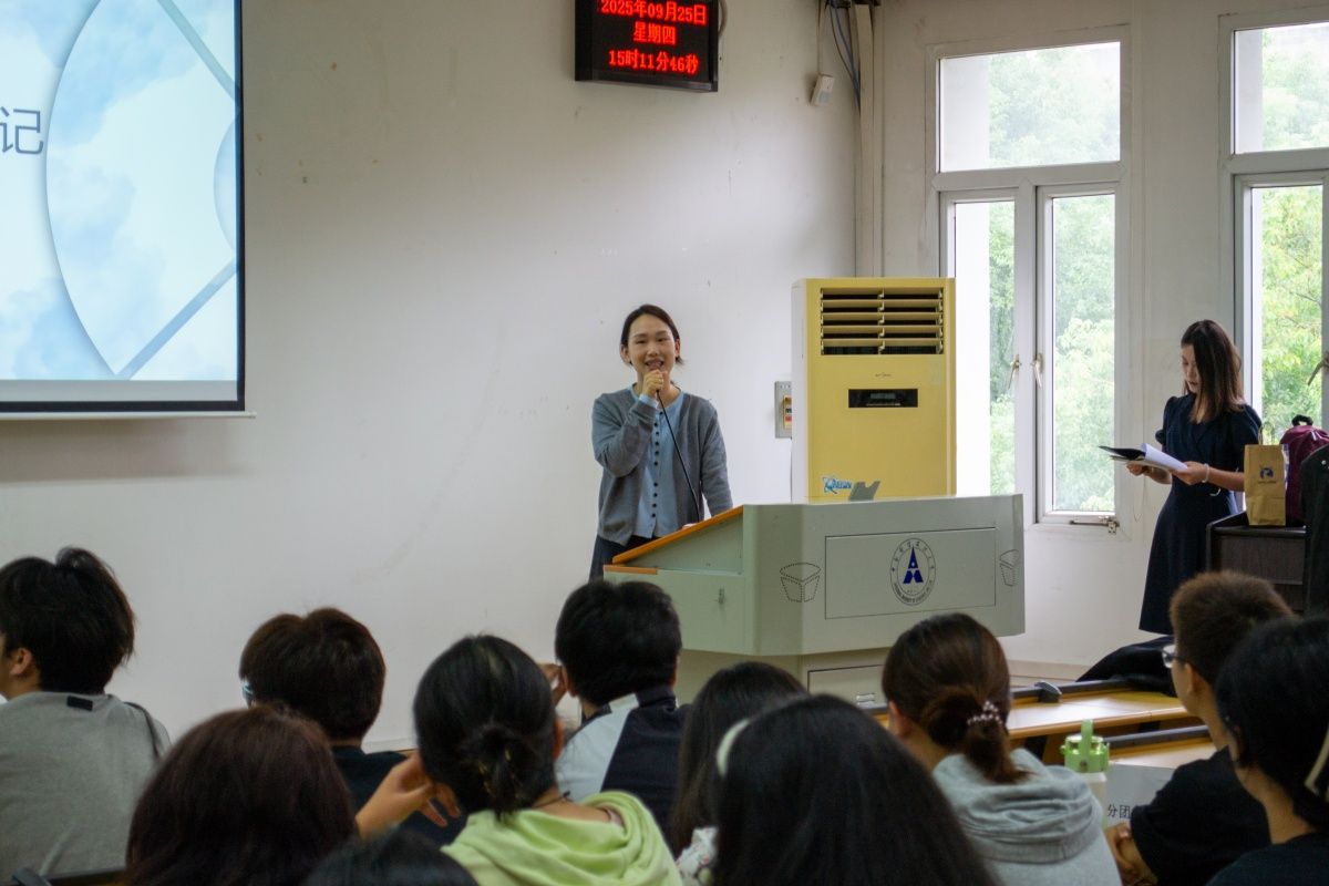 活动伊始,金融学院团委书记李奥老师讲话。李奥老师分享了自己的经历,介绍了团学组织的基本框架,并希望新生首先确定一至两个意向部门,在接下来的宣讲中重点了解这些部门,希望新生能够在团委组织锻炼自我,发光发热。