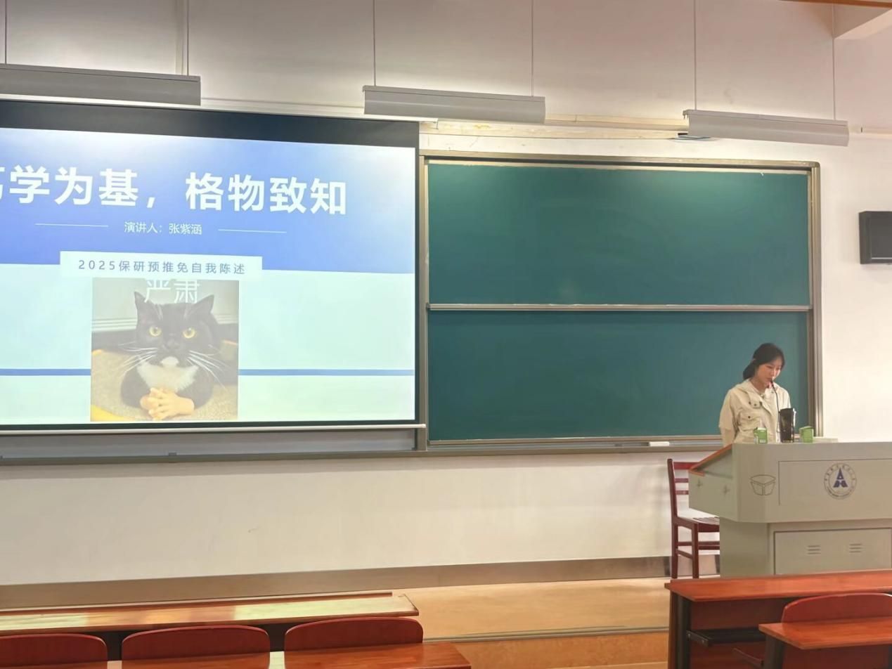 分享会现场氛围热烈,两位主讲人针对同学们提出的“如何平衡学生工作与学业”“推免面试如何突出个人优势”“竞赛备赛有哪些避坑指南”等问题,结合自身经历逐一答疑。张紫涵以“时间块管理法”为例,分享了如何高效分配学习、工作与竞赛时间;唐嘉祥则用自己的面试小故事,生动讲解了如何在短时间内展现个人科研潜力与综合素养。师兄师姐的分享“接地气、有干货”,不仅让同学们对学业规划和推免路径有了更清晰的认知,更从他们身上汲取了“敢闯敢拼、精益求精”的成长力量。