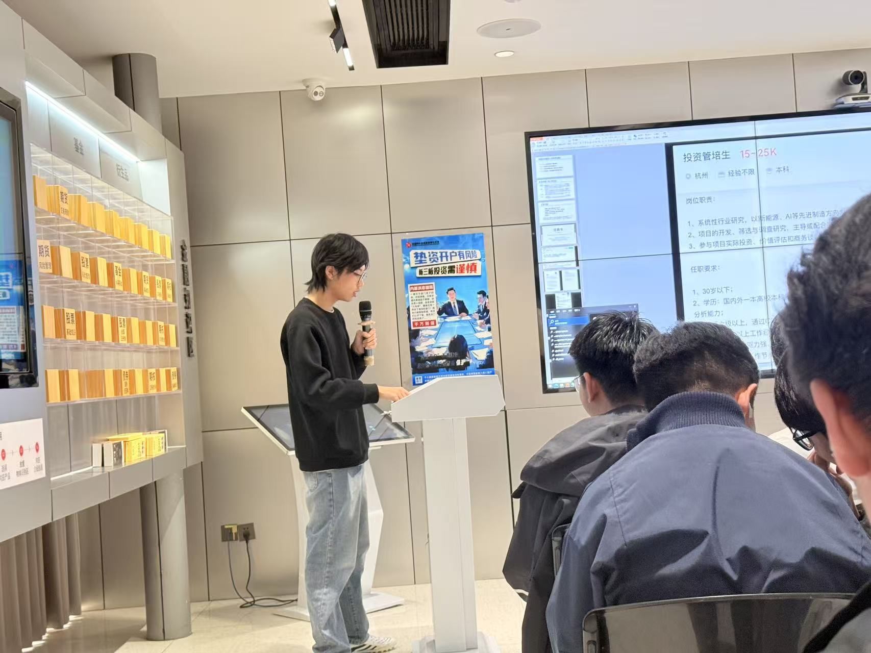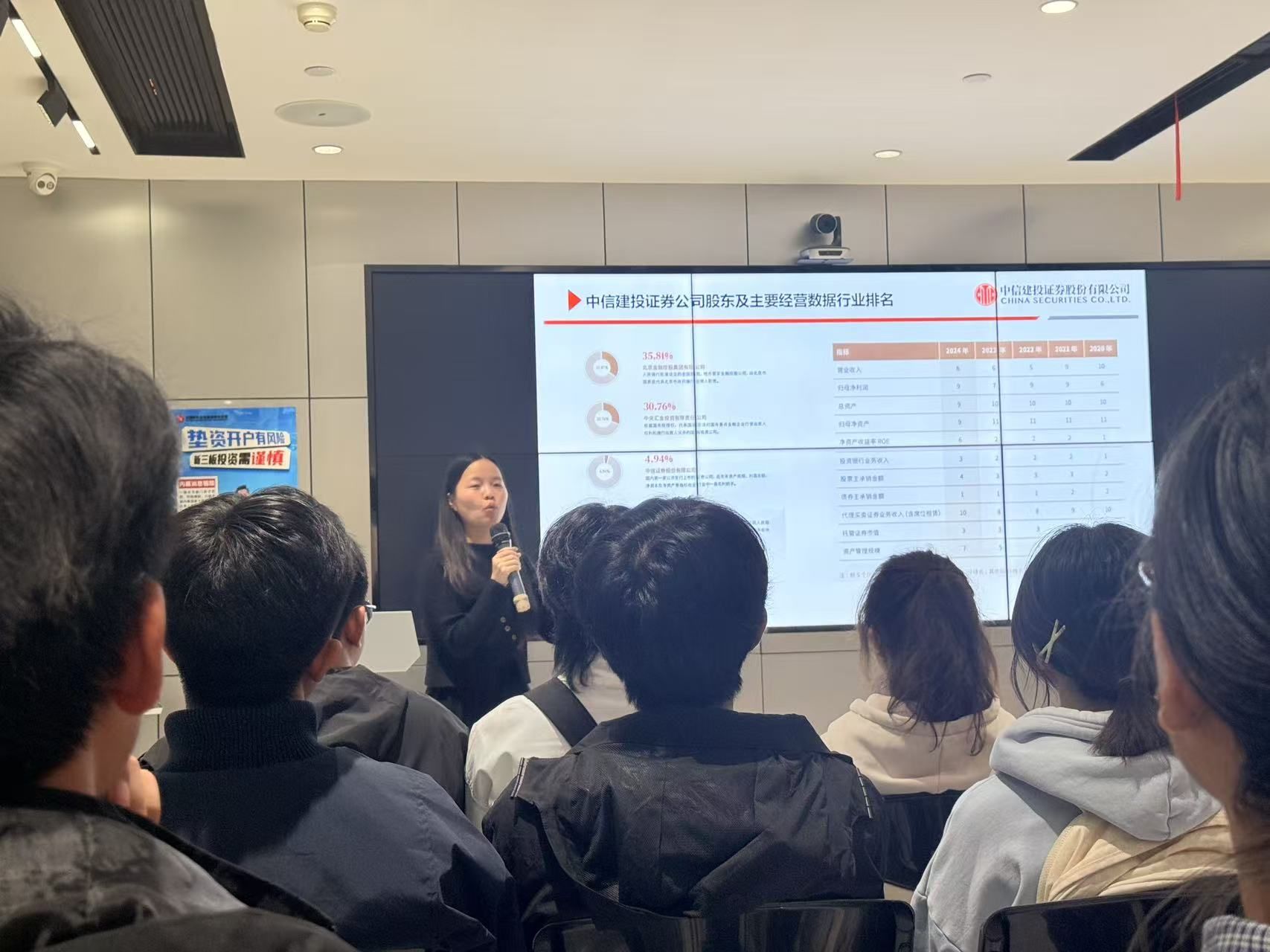 中信建投的负责人对米兰电竞·(中国区)师生的到来表示热烈欢迎。教育基地负责人表示,他们始终坚持“宣传证券政策法规,普及证券知识,传导理性投资理念,揭示投资风险,引导依法维权。”的理念。本次参访分成两大板块:第一部分由基地负责人带领大家了解金融行业的发展以及未来前景;第二部分开展相关讲座。