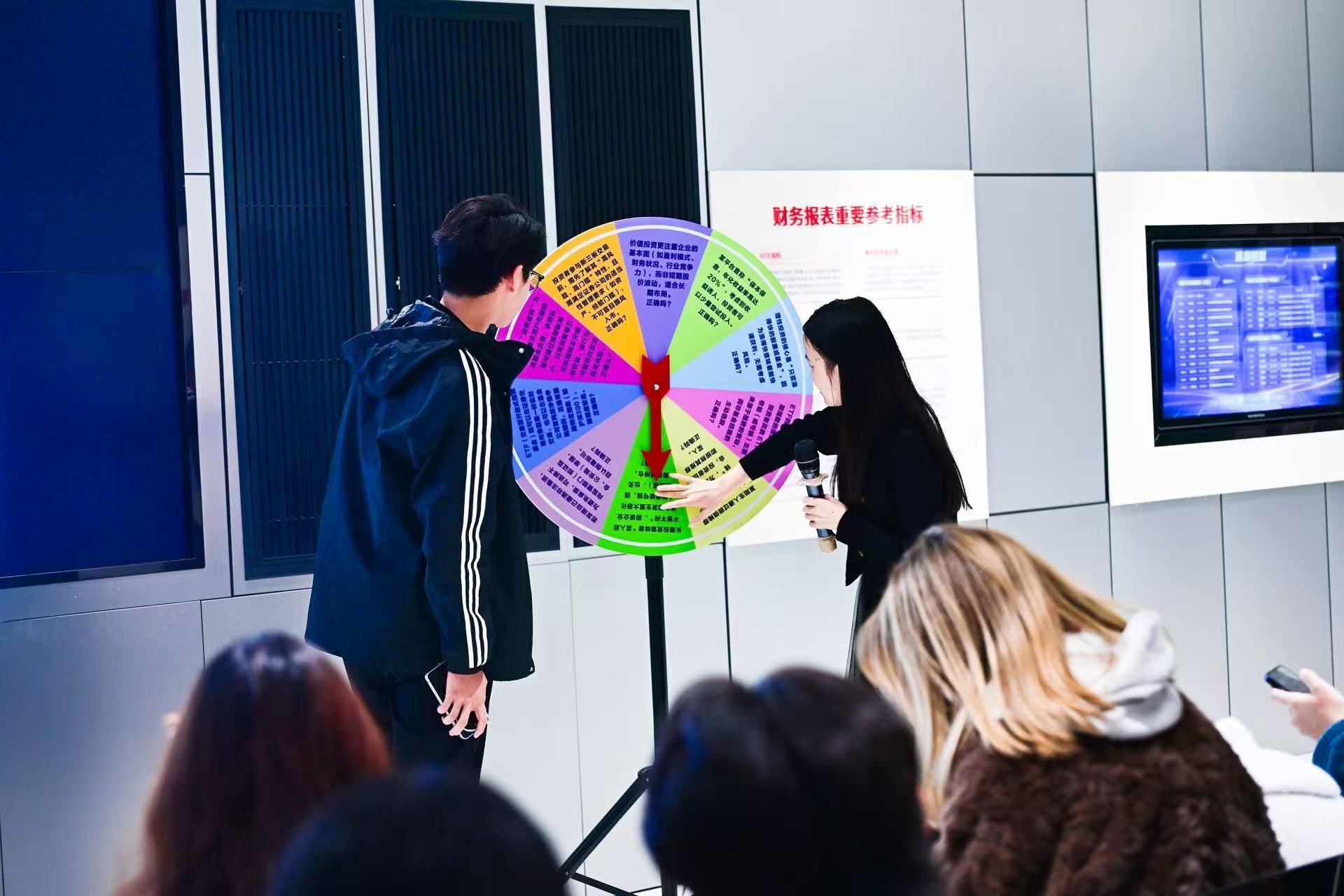 项目负责人介绍了公司的发展历程、分布、公司架构以及优势。首先进行了暖场小游戏以调动同学们的积极性,接着通过互动提问的方式引出对于证券公司、投资中的资金流向以及对金管体系的介绍。然后请同学进行情景演绎网络刷单骗局,以提高反诈骗意识。
