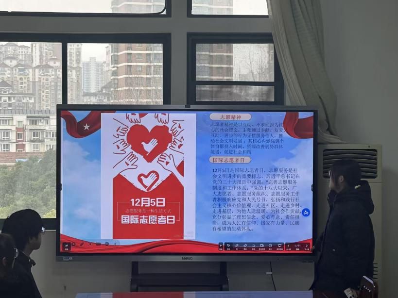 在志愿精神学习环节,主持人详细阐释了志愿者精神“奉献、友爱、互助、进步”的核心内涵,介绍了12月5日国际志愿者日的由来与意义。活动特别引用习近平总书记在党的二十大报告中“完善志愿服务制度和工作体系”的重要论述,通过分享优秀志愿者服务案例,让同学们深刻认识到志愿服务是社会文明进步的重要标志。现场互动中,同学们积极交流对志愿服务的理解,纷纷表示将主动参与社区帮扶、公益宣传等志愿活动,以实际行动践行社会主义核心价值观,传递爱心善意与责任担当。