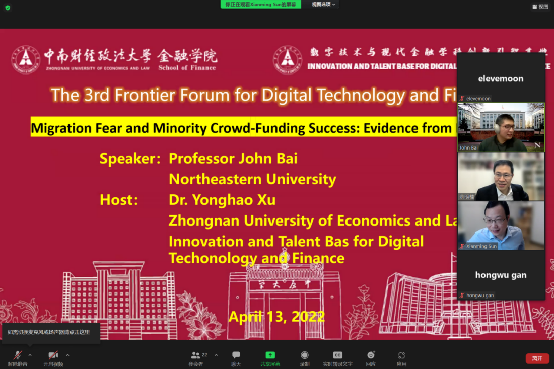 (学生记者何雨霏)2022年4月21日上午9:30,文澜金融论坛251期《Shareholder-Creditor Conflicts and Limits to Arbitrage: Evidence From the Equity Lending Market》在线上顺利举行。本次讲座由金融学院孙宪明副教授主持,主讲人为北卡大学夏洛特分校贝尔克商学院褚勇强教授。论坛分享的主题为“Shareholder-Creditor Conflicts and Limits to Arbitrage: Evidence From the Equity Lending Market”。金融学院共50余位师生参加...