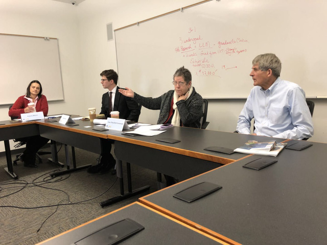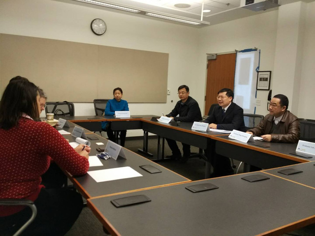 当天,代表团一行与加州州立大学Sacramento分校法学院负责国际交流的任欣教授进行座谈,董邦俊副院长介绍了此行的行程安排,学院的基本情况以及面向未来的发展 目标,然后双方就合作的具体内容进行交流,内容涉及双方的夏令营、法律硕士、教师访学等,达成一致意见。任教授表示,希望加大美方学生赴中国学习的力度。
