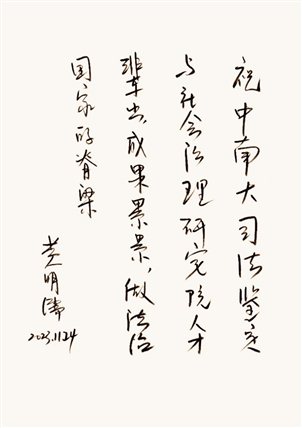 黄明儒教授亲笔题写的寄语(图|秘书处)