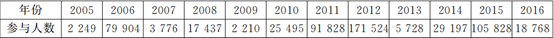 表2 法律草案征求意见系统参与人数趋势(2005-2016年)