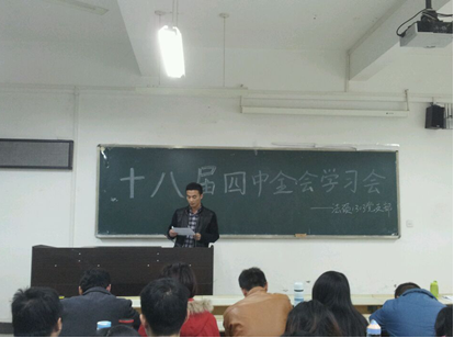 为了深入学习党的十八届四中全会精神,1117日晚,法硕1303班党支部在文添107教室举行了十八届四中全会专题学习活动,支部全体党员和入党积极分子参加了此次活动。
