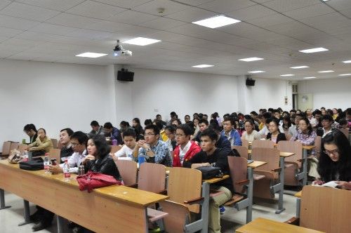 在自由互动环节,在场的同学们积极向两位主讲人提出了研究生期间的学业、职业规划等方面的问题,秦博士和石博士都耐心地一一予以解答,并以“顺自然之性发展”勉励大家,讲座行将结束,同学们仍意犹未尽,纷纷追问论文写作方法,交流学习、困惑等。