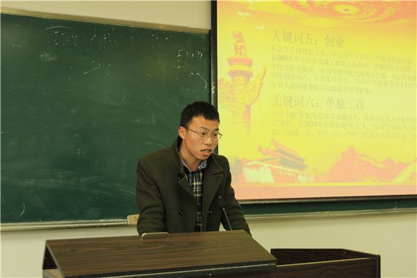 第五组的关键词是“创业”。从去年全国两会以来,李克强不下十次公开谈及创业问题,更是宣示要“在960万平方公里大地上掀起大众创业、草根创业新浪潮”。余平同学首先介绍了两会关于创业的具体情况,然后介绍整个社会环境对于创业的包容与支持,其次说明了创业者在创业过程中可能遇到的问题,最后,说明创业能成功最重要的是创业者的素质,强调创业者提升自我的重要性。