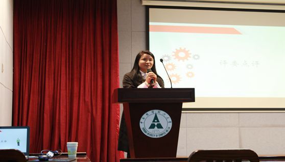 在接下来的各个环节,参赛选手们各显身手,展示了自身良好的应对能力和处理突发事件的能力,获得了评委和学生的称赞。随后,刘俊老师作点评,她对每位选手的优点和不足进行了分析,并针对不足之处作了细心的指导,参赛选手获益匪浅。
