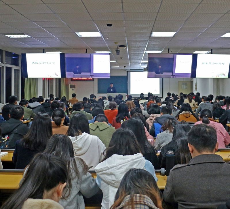 图三余金聪老师在讲解就业压力的应对