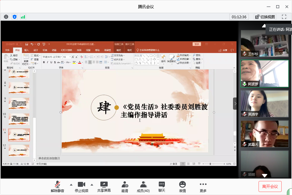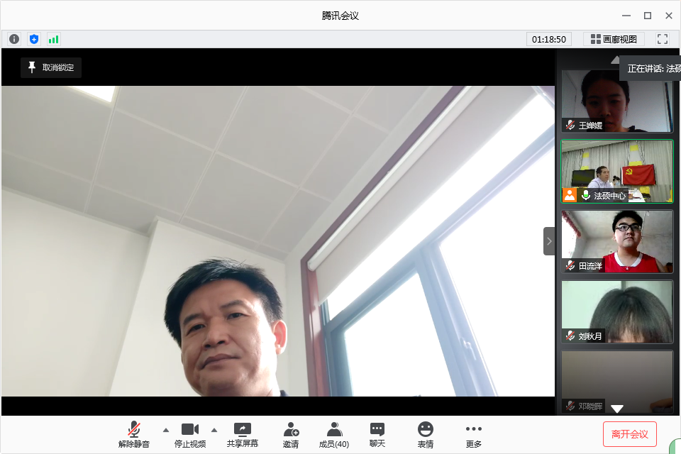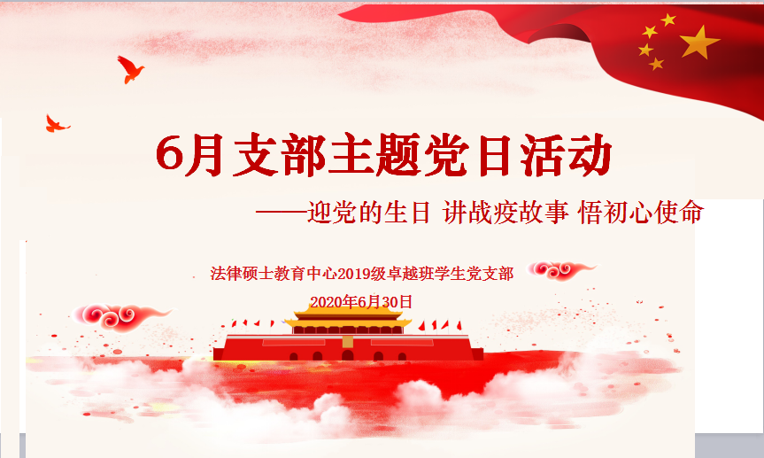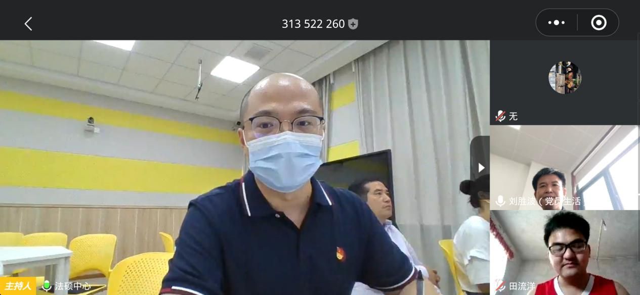 最后,易育同志表示今天的支部活动非常有意义,明天就是7月1日,党的生日。为了迎接党的生日,以“线上线下+微党课”的形式,开展了此次支部活动。微党课引导青年党员树立远大理想,知党、爱党、兴党,鼓励法硕学生德法兼修、成长成才,希望同学们能够坚定理想信念,志存高远,脚踏实地,砥砺前行,为实现中华民族伟大复兴的中国梦不懈奋斗!