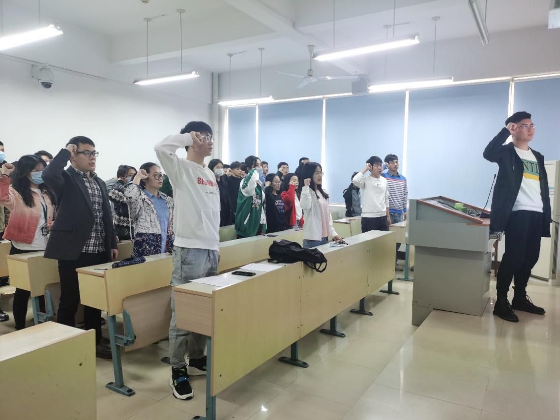 活动第一项,重温入党誓词。由胡慧君同志领誓,铿锵话语展现出其的坚定态度。全体同志起立一同宣誓,面对字字誓词,大家心怀敬畏。每一句有力的宣誓都流露出大家对党、对国家的热爱与崇敬之情。