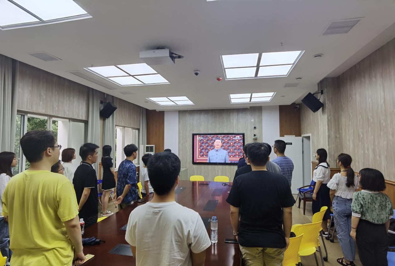 (通讯员 马禹 摄影 郭兵林)2021年7月1日上午8时,庆祝中国共产党成立100周年大会在首都北京天安门广场隆重举行。法律硕士教育中心组织部分师生代表在文治楼法学实验中心302室观看整场大会。