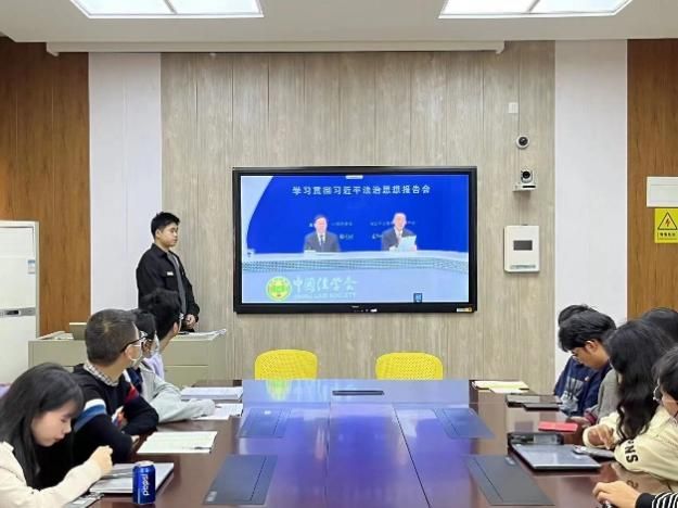 随后,两支部共同观看了学习贯彻习近平法治思想报告会。陈鹏同志表示在依法治国建设的背景下,法学生应当坚定社会主义法治信念,认真学习、领悟法治思想,并将其付诸于行动。