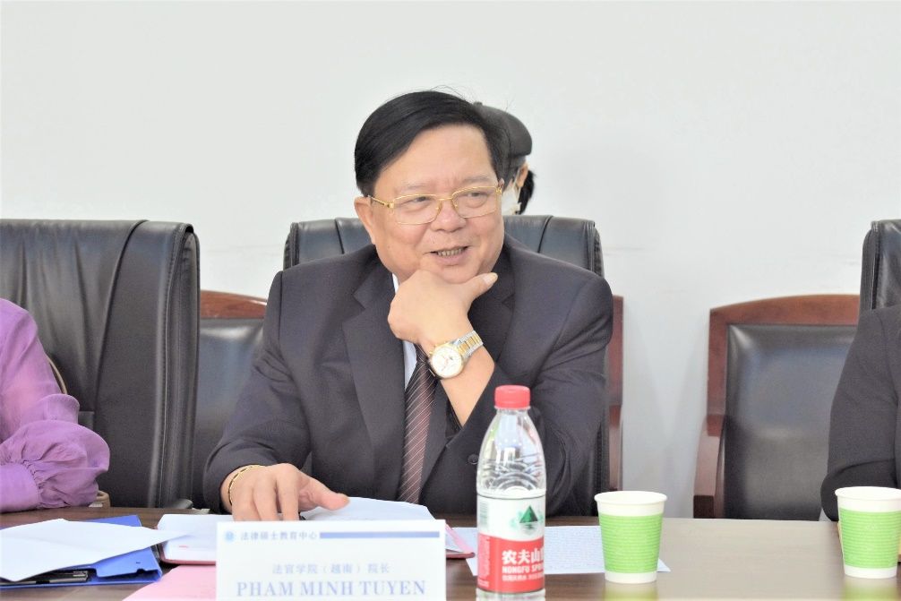 越南法官学院PHAM MINH TUYEN院长介绍法官学院是越南最高人民法院直属高校,是越南唯一一所从事法官、审查员和书记员培训的学校。他对与我中心的合作交流表示高度重视,期望通过合作推动科研和教学活动提质增效。