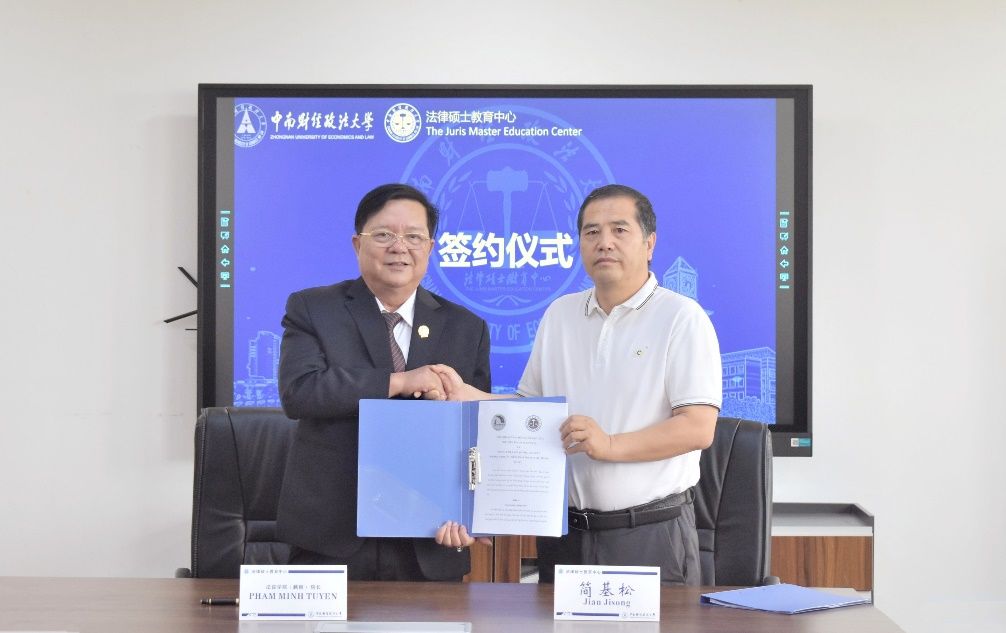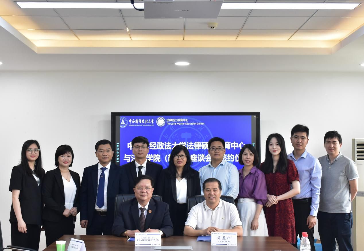 (通讯员 余安琪 学生通讯员 代诗涵 刘玮琨)为加强涉外法治专业人才培养,特别是国别法人才培养,助推法学一流学科建设,2023年6月7日上午,法律硕士教育中心与越南法官学院合作签约仪式暨座谈会于文治楼515会议室顺利举行。法律硕士教育中心主任简基松,国际教育学院副院长汪正君,法律硕士教育中心副主任王广波、办公室主任侯竟、辅导员兼外事助理余安琪,越南法官学院院长PHAM MINH TUYEN、副院长DUONG TUYET MIEN、处长VU MINH GIAM、主任DO NHAT ANH、NGUYEN VAN NAM、NGUYEN ANH THU、TRAN THI THANH THUY出席本次签约仪式。仪式由王广波主持、TRAN THI THANH THUY翻译。