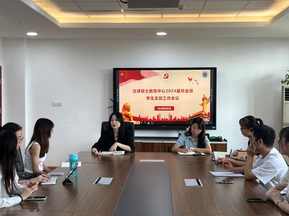 (通讯员 常明慧 摄影 汪星宇)为进一步做好毕业生党员工作,9月5日下午,法律硕士教育中心在文治楼515会议室举办2024届毕业班学生党支部工作会议。法律硕士教育中心研究生辅导员余安琪、马晨娇,法律硕士教育中心2024届毕业班党支部书记、支部委员出席本次会议。会议由余安琪主持。