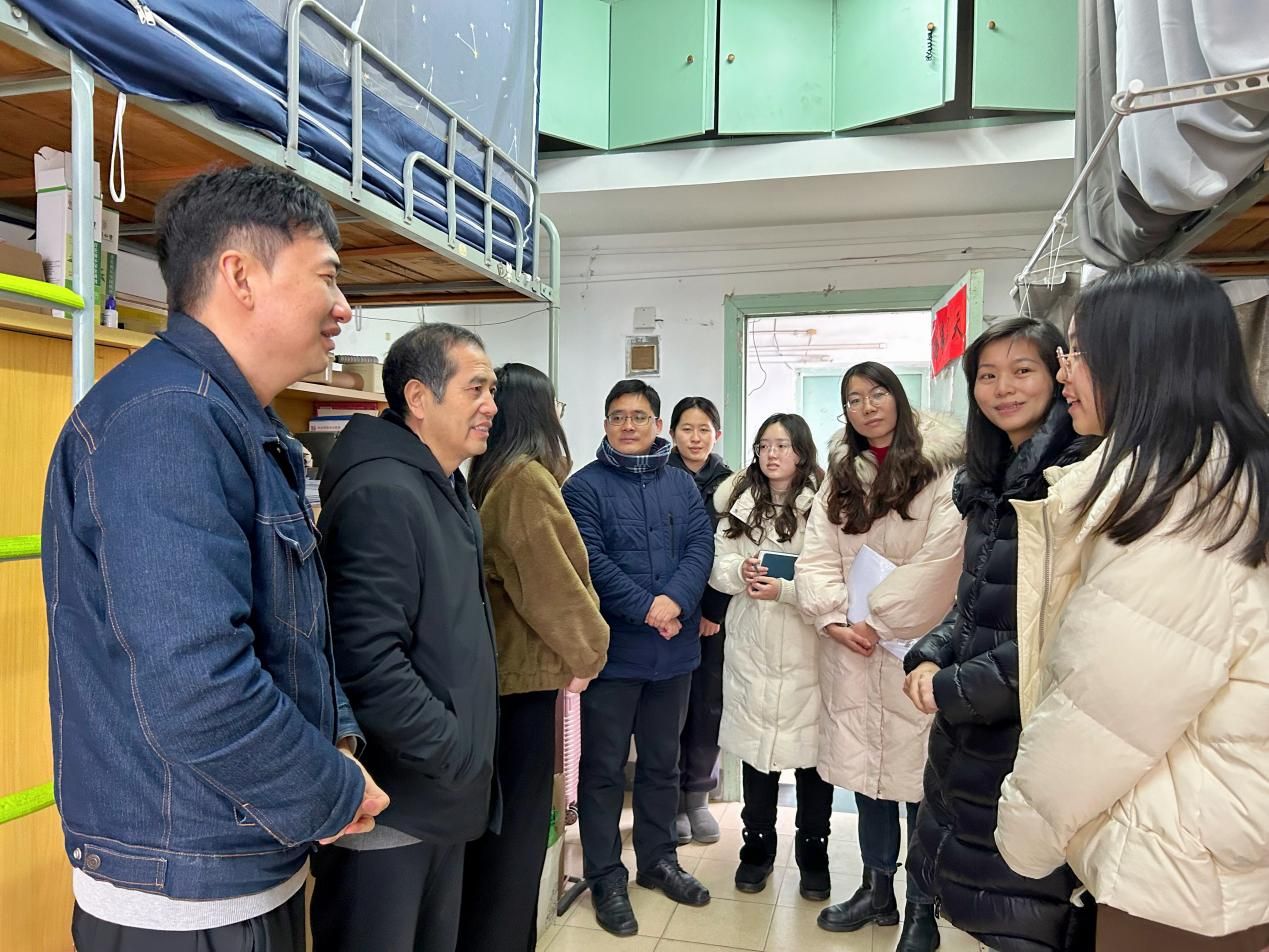 走访过程中,简基松与学生进行亲切交谈,详细了解学生的假期学习生活情况。他告诫同学们,“大多数人在做什么的时候,你也在做什么,那么你不会太优秀”,鼓励同学们在新学期明确学习方向、合理规划时间、积极参加活动、实现全面发展,勉励同学们珍惜读研时光,做好职业规划,勤于学习,善于学习,夯实专业基础,积累前进能量。