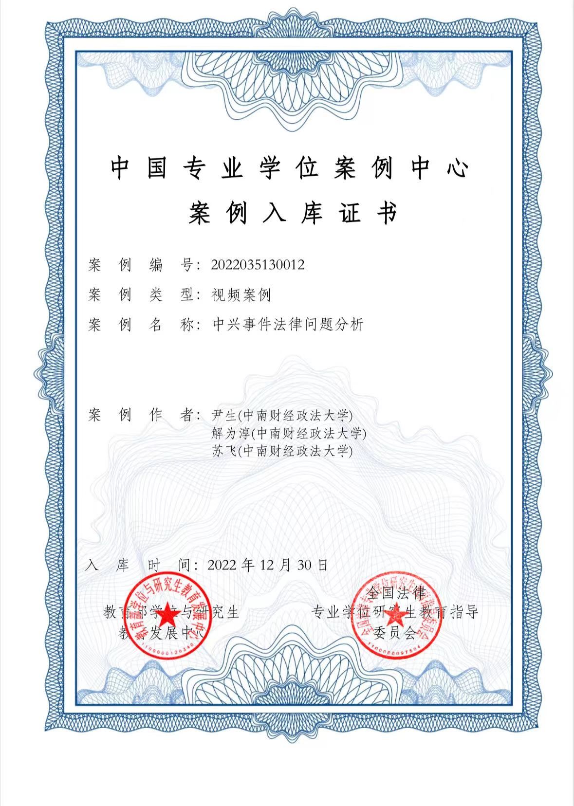入库案例一:法律硕士专业学位研究生导师尹生教授等撰写的视频案例——《中兴事件法律问题分析》。该案例教学采用线上线下翻转课堂设计,突出学生的主体地位,老师主要承担激励、引导、纠错、释疑功能。课堂上,师生共同梳理基本案情和争议焦点,教师提出拟研究的问题,并加以资料检索和研究方法方面的指导。学生在教师的指导下,收集和阅读相关资料,思考和研讨相关问题,在切身体验中熟悉案例分析和法学研究的基本流程和规范,掌握法学论证的基本思路和方法,把握法学创新的难点和方法,全方位提升学生的信息素养、思辨能力、研究水平和创新能力。