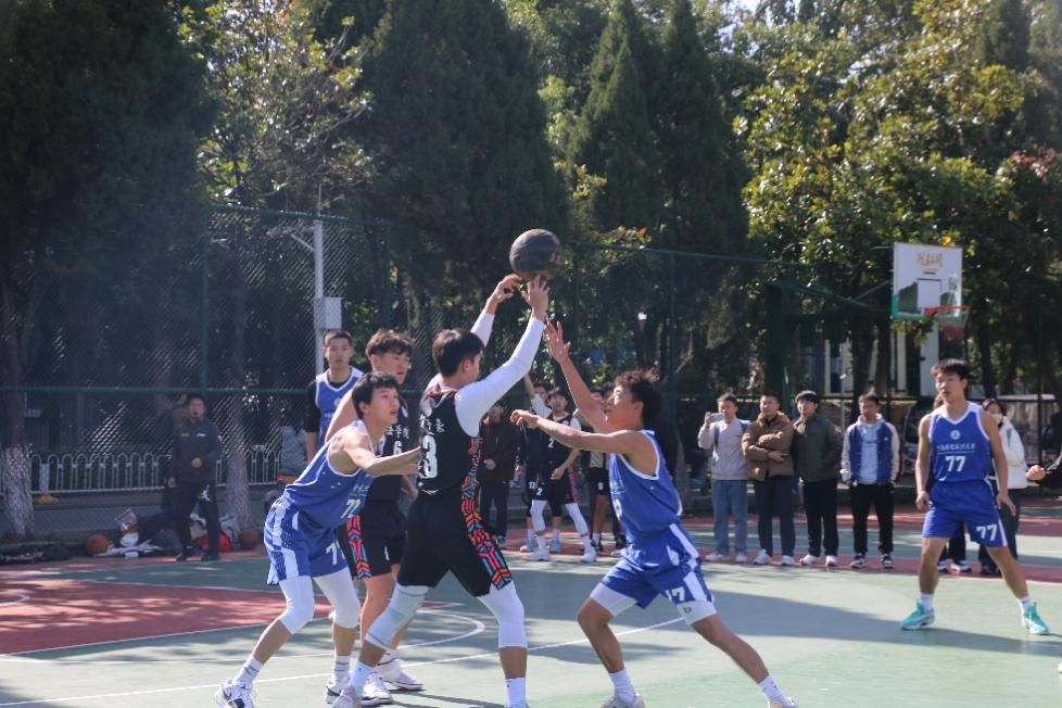 (通讯员 丁国记 摄影 杨佳彬 万晴 王子腾 李颖涵)为增进兄弟学院之间的友谊,促进各学院之间的沟通交流,提升大家参与体育锻炼的积极性,11月20日至11月28日,由法律硕士教育中心、国家治理学院、哲学院、法学院、公共管理学院和信息工程学院共同举办的六院联合研究生篮球赛在鸟笼篮球场举行。“六院杯”篮球赛作为一年一度的体育盛事,汇聚了来自不同学院的篮球精英,今年的比赛更是激烈异常,各队实力不容小觑。法硕中心代表队凭借精湛的球技、默契的配合和不屈不挠的斗志,一路过关斩将,最终在决赛中以压倒性的优势战胜对手,再次将冠军奖杯收入囊中,勇夺“六院杯”四连冠!