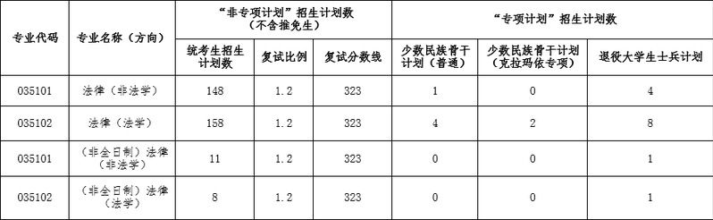 1.同等学力加试:测试考生专业基础知识和专业综合能力,加试方式为笔试,考试时间3小时,试卷满分100分,60分为合格。加试科目为行政法和经济法,加试不合格者不予录取。