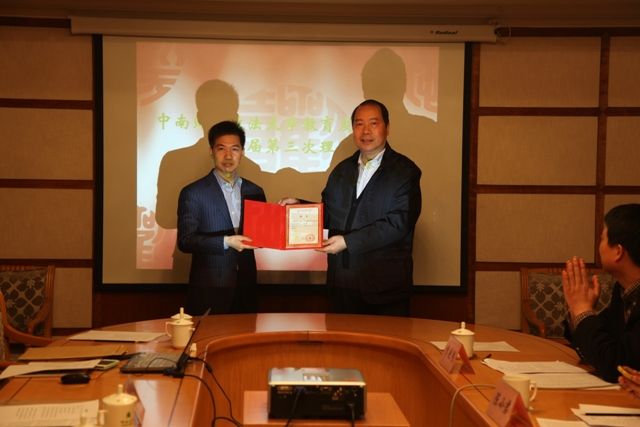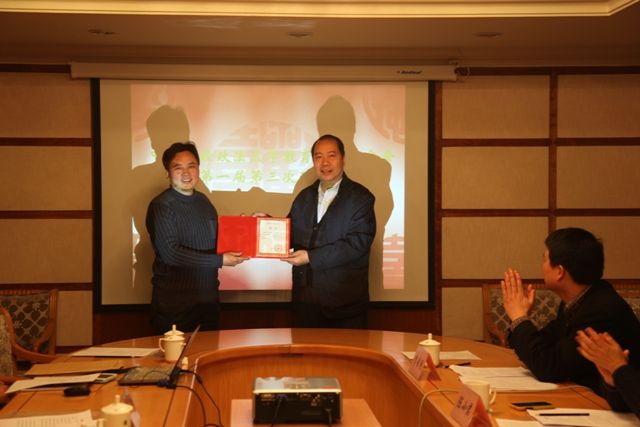会议首先进行了增补理事和改选秘书长的议程,由温习副秘书长宣读建议名单,全体与会代表经讨论同意增补黄柏校友为基金会理事,同时改选阮世喜同志为秘书长。徐敦楷理事长代表基金会向黄柏理事和阮世喜秘书长颁发了正式聘书。