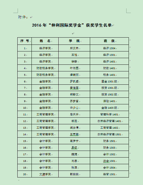 “仲利国际奖学金”是由国际知名的、专门从事融资租赁、提供各行业设备融资服务的仲利国际租赁有限公司捐资、在全国财经类高校设立的奖学金。迄今,大陆已有12所高校设有该奖项。仲利国际租赁有限公司从2014年起连续三年每年捐资十万元在我校设立该奖项,以奖励为主、帮困为辅,每年奖励20人。奖励对象为经济学院、财政税务学院、金融学院、工商管理学院、会计学院、文澜学院具有正式学籍的在读大二、大三、大四学生,经过个人申请、学院推荐、学校审核后,最后由仲利国际租赁有限公司终审。(基金会工作办)