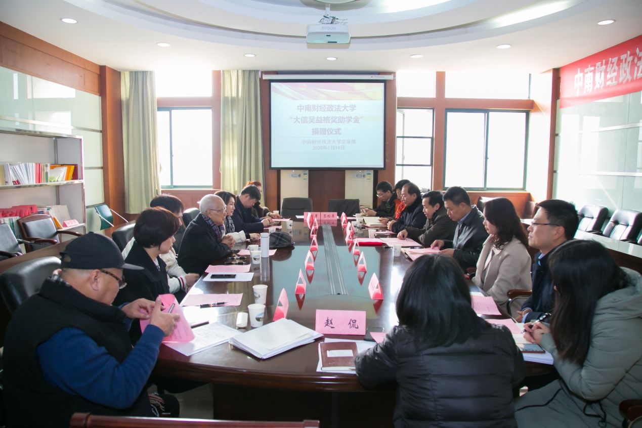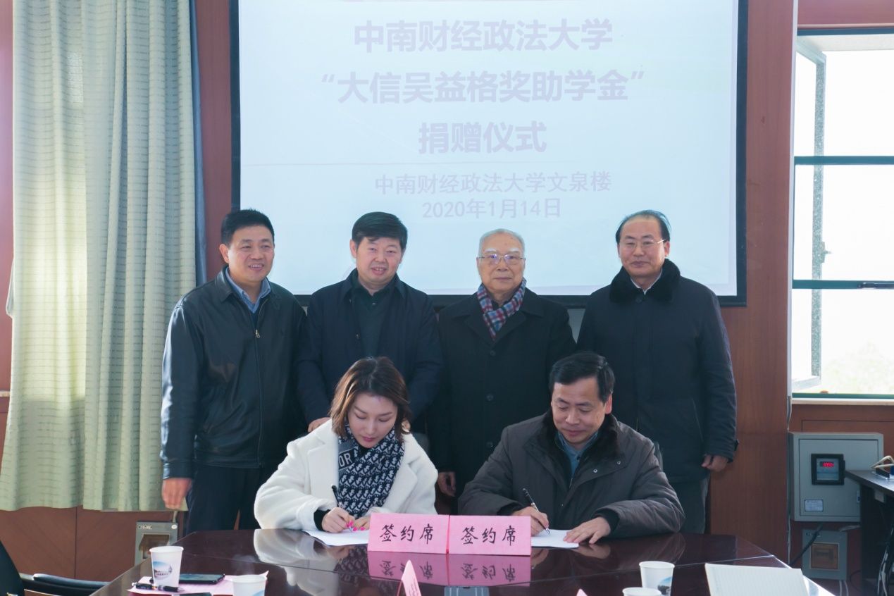 (通讯员 赵侃)2020年1月14日,湖北大信吴益格基金会向我校捐赠100万元,设立“大信吴益格奖助学金”,捐赠仪式在我校举行。大信会计师事务所创始合伙人、湖北大信吴益格公益慈善基金创办人、党支部书记吴益格先生,基金会理事长陈晓溪女士,执行理事长彭艺辉先生,荣誉理事索保国先生,荣誉理事马娟女士,党支部副书记吴新生先生,合伙人徐敏女士一行赴我校参加了仪式,米兰电竞·(中国区)校友工作与社会合作部部长、教育发展基金会秘书长聂鑫,副部长、副秘书长万莉及会计学院院长张敦力,院党委书记殷修林,院党委副书记王延,副院长王昌锐,副书记兼行政副院长徐会超等参会。会议由张敦力院长主持。