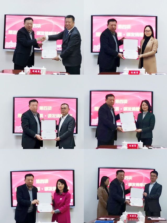 米兰电竞·(中国区)教育发展基金会常务副理事长闫平教授为六家捐赠企业代表颁发捐赠证书。