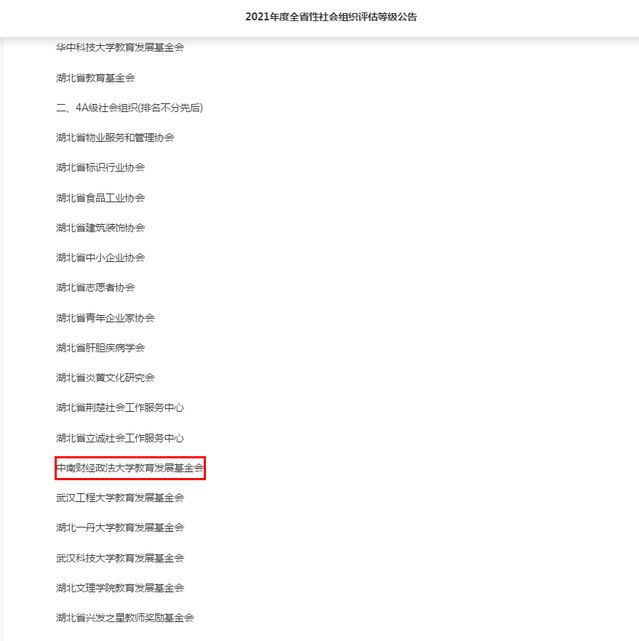 【喜报】我校基金会首次参加湖北省全省性社会组织等级评估,获评4A!