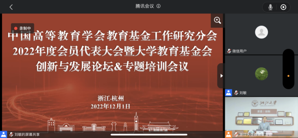 12月1日下午,我校基金会全体员工参加了中国高等教育学会教育基金工作研究分会2022年度会员代表大会暨大学米兰 电竞全站APP创新与发展论坛&专题培训会议。
