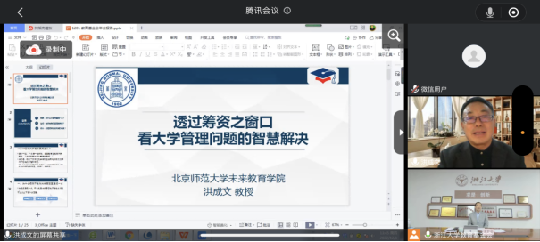 本次线上会议由中国高等教育学会教育基金工作研究分会主办,由分会副理事长兼秘书长沈黎勇主持。首先由沈黎勇秘书长传达学习学会第八届会员代表大会会议精神。