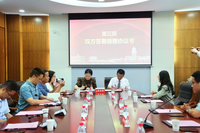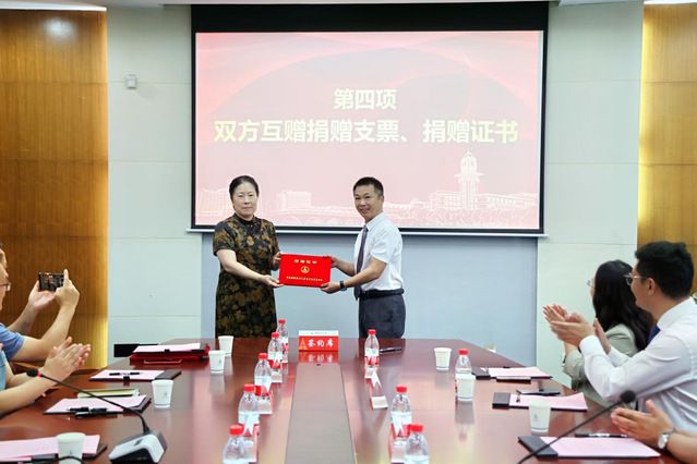 姚莉副校长与梅雪峰主任签署《捐赠协议书》,并互赠捐赠支票和捐赠证书。