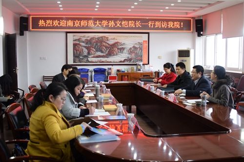 2017年3月15日上午10:00在法学院六楼会议室,南京师范大学法学院孙文恺副院长带队,率司法鉴定中心赵杰主任、法学品牌专业项目秘书姚远老师、本科教学秘书黄学琴老师一行专程来校,与我校法学院徐涤宇院长、胡弘弘副院长、研究生院张德淼副院长、法学院教务办付晓主任、法学实验教学中心邓晓静秘书长、方玉珍实验员就法学专业学科评估、人才培养、本科与研究生教学等事项进行交流、研讨。
