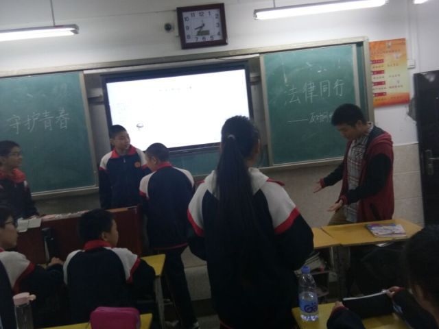 为了增强学生的法律意识,让学生学会运用法律手段维护自身安全,构建一个更安全、更和谐的校园环境。中南法援普法部于2017年11月27日在武汉市关山中学开展了124宪法宣传日系列活动之普法进校园——“守护青春,法律同行”的主题班会。