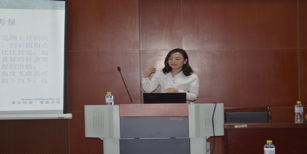 法律硕士教育中心17级(法本)法硕的常露允同学气定神闲、风趣幽默地讲述了调研报告的产生及具体内容、得出的观点,赢得了热烈的掌声。