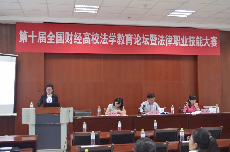 开幕式后,会议设置了两个分会场:一个分会场进行第十届全国财经高校法学教育论坛的交流,另一个分会场则为第三届全国财经高校法律职业技能大赛的报告环节。在法学教育论坛分会场,与会教师纷纷围绕法学人才培养和法学专业实践教学两大主题展开研讨,邓晓静老师结合我校法学实验教学中心工作的实际情况,作了题为《法学实践教学的体系化建设》的主题发言。