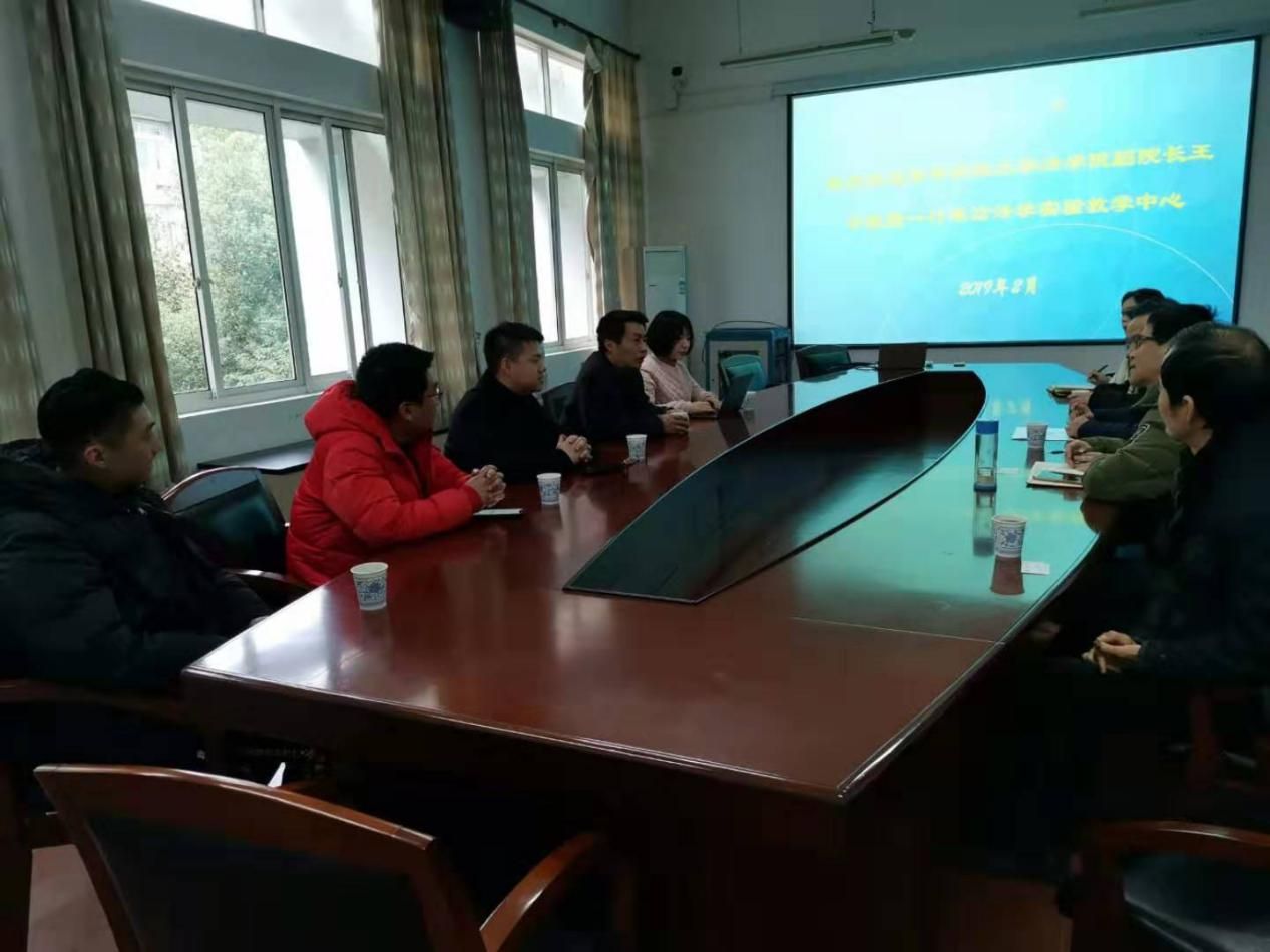 2019年2月27日下午,华中科技大学法学院副院长王干教授一行来访我中心,就法学虚拟仿真实验室的软硬件建设等内容与法学院副院长、法学实验教学中心副主任江河教授,LETS总课题组执行负责人疏义红老师,秘书长邓晓静老师,经济法系李岩老师和孙艺老师进行了座谈交流。
